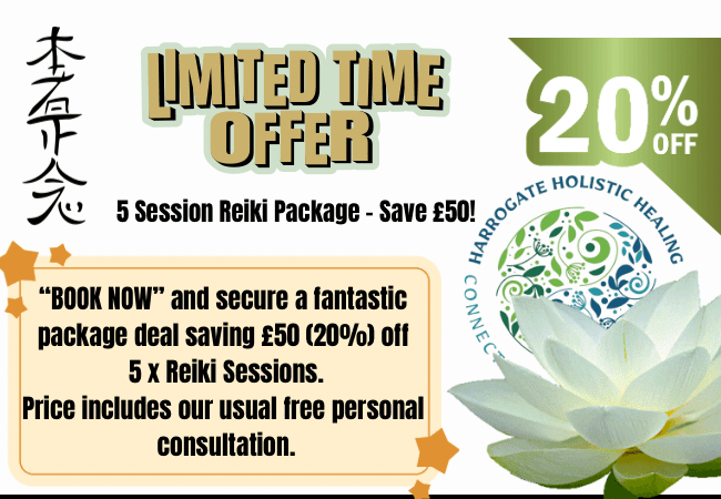Save £50 (20%) Off By Booking a Package!* To celebrate our opening Harrogate Holistic Healing is offering a substantial discount on one of our most popular treatments. The five session Reiki package includes our initial personal consultation to discuss your requirements and personal goals before commencing your first treatment (1.5hr session). Click Book Now below […]