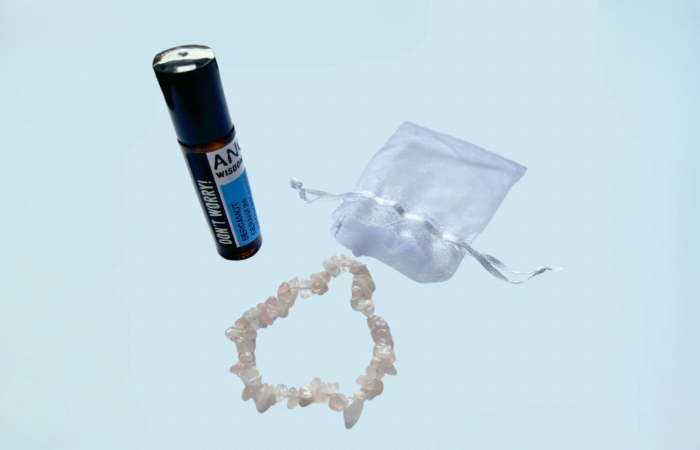 Complementing this calming Essential Oil Blend is a Rose Quartz Gemstone Chip Bracelet, carefully selected to amplify your inner serenity and emotional well-being. Whether you’re grappling with life’s stresses or simply seeking a moment of calm, this pocket set empowers you to let go of worry and embrace a sense of peace, harmonizing both your mind and spirit.