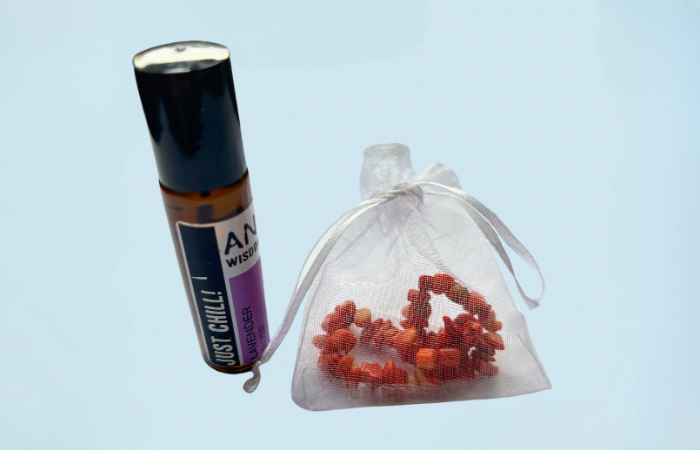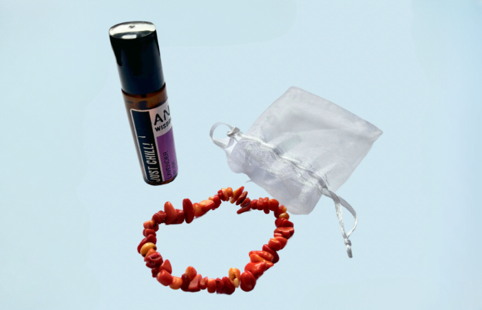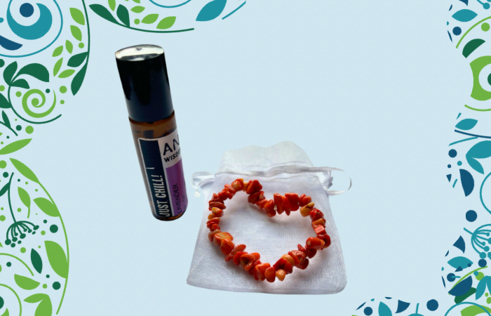 Complementing this serene Essential Oil Blend is a Coralite Gemstone Chip Bracelet, thoughtfully selected to amplify your inner calm and encourage moments of stillness. Whether you’re seeking a reprieve from a busy day or simply desiring a moment to just chill, this set empowers you to find solace, aligning both your heart and spirit with tranquility and ease.